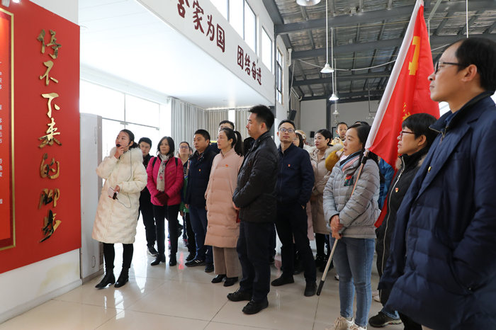 在南水北调大柴湖移民精神展览馆,全体党员面对鲜红的党旗,重温了入党誓词,观看了反映大柴湖50年历史图片展—《停不下来的脚步》、宣传片《大柴湖》,大家被柴湖移民舍小家为大家,筚路蓝缕、艰难创业、顽强拼搏的精神深深感动,频频赞叹。