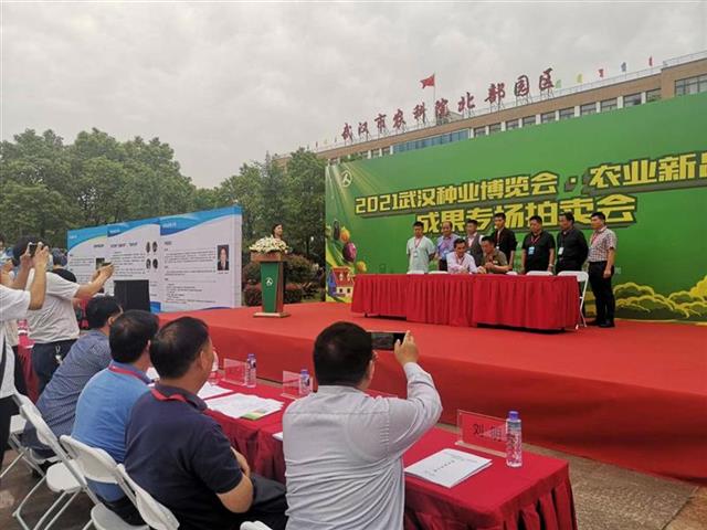 湖北日报讯(记者汪彤、通讯员陈海峰)5月28日10点半,武汉种博会首场活动——农业新品种成果拍卖准时开拍。历时1.5个小时激烈角逐,6项成果尘埃落定,成交金额总计达1650万。中国农科院油料所选育的高产、优质、多抗、广适大豆新品种“中豆63”品种经营权现场,经过20多轮加价,最终以1500万元成交,成为此次种博会拍出的最高价,并现场签约。