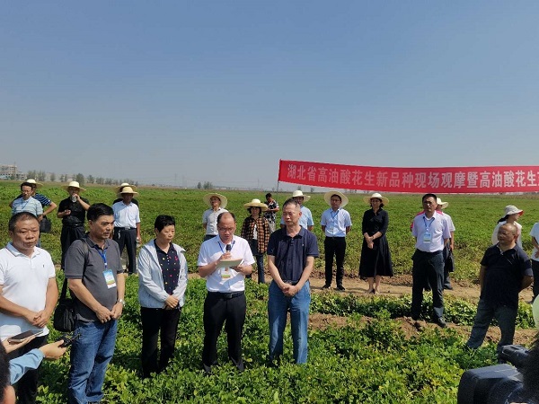 近日,中国农科院油料所和湖北省农技推广总站,联合在襄阳市襄州区召开了湖北省高油酸花生新品种现场观摩与产业发展研讨会。油料所选育的高油酸花生新品种中花28经专家现场测产,折干果亩产达532公斤,比当地推广良种增产20%以上,受到参会代表和当地种植户一致肯定。