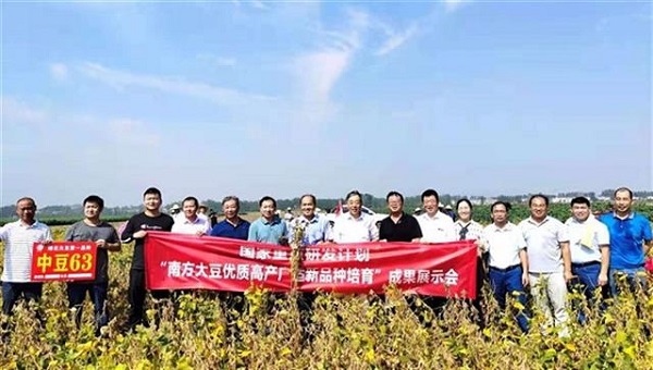 中豆63是中国农科院油料所南方大豆遗传育种创新团队历经20余年的系统研究,构建了“优异种质发掘+骨干亲本改造+生态穿梭育种+性状精准鉴定+分子标记辅选”的集成育种技术体系,突破了大豆高产与优质、抗倒、抗病等的矛盾,选育出“中豆63”,实现了大豆高产优质多抗的协同改良。