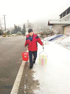 今年1月底,山中大雪纷飞,村民们更是无水可用。任小平和队员们挑起水桶,从一公里外帮老年村民挑水应急。任小平打定主意,一定要在自己驻村期间,解决村民用水难。