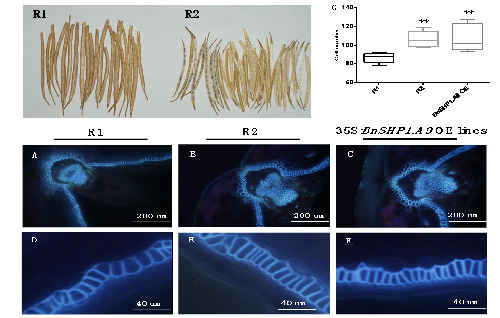 该团队从抗性资源的评价方法,抗性种质资源的鉴定和筛选,以及该性状的遗传控制结构基础出发,鉴定出特异裂角抗性基因BnSHP1.A9。他们发现,该基因的启动子区上游序列的一个转座子插入可抑制该基因表达,从而导致油菜裂角抗性提高。