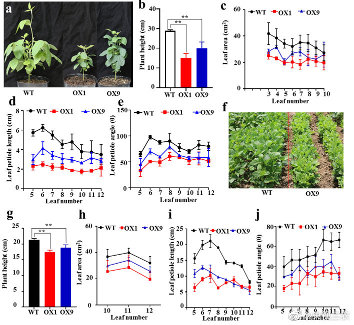 近日,中国农业科学院油料作物研究所南方大豆遗传育种创新团队发现了调控大豆株型、提高大豆耐密植与耐旱性的重要基因GmMYB14,揭示了该基因通过油菜素内脂途径调控大豆株型,提高大豆耐密植与耐旱性的分子机理。相关研究成果在线发表在《植物生物技术(Plant Biotechnology Journal)》上。
