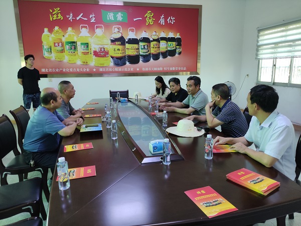 在松滋沙道观、洈水等乡镇,黄凤洪一行考察了中油杂19和大地199油菜绿色高质高效标准化生产示范基地、“硒滋圆”菜薹专用油菜育苗基地、7D高品质菜籽油加工基地以及油菜大地画设计选址地点,详细了解了松滋油菜产业全产业链开发情况。黄凤洪表示,油料所将结合松滋产业发展实际,统筹推进科技成果在松滋集成转化,通过良种良法配套、农机农艺融合、实现优质优用,挖掘“油”“菜”“花”全区域布局、全价值链发掘、全产业链开发的“三全高效”油菜产业新模式新业态,为实现松滋油菜产业转型升级和可持续发展,促进乡村全面振兴提供有力科技支撑。